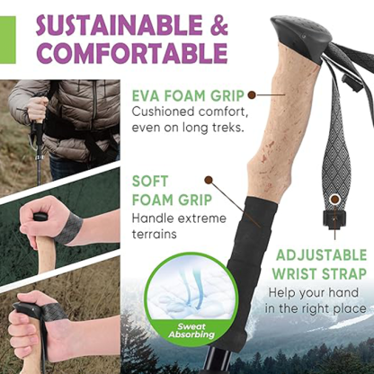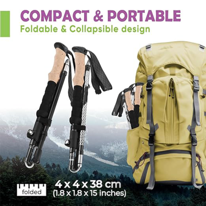 The Foldable Trekking Poles set is a lightweight, high-performance pair of poles designed for versatile outdoor adventures. Engineered with precision folding technology, they offer superior stability and shock absorption for hikers, trekkers, and backpackers—collapsing into a compact size for easy portability and quick deployment on any trail.