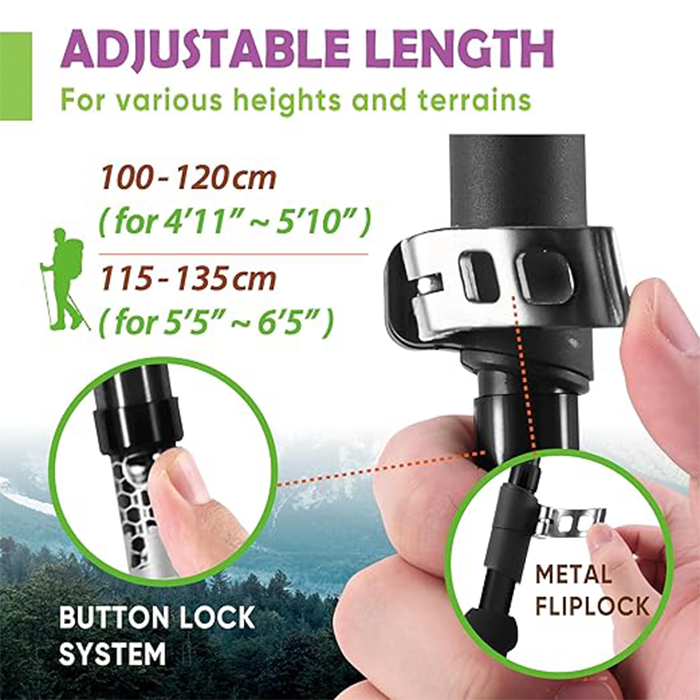 Equipped with reliable external lever locks or twist locks, allowing for fast, tool-free length adjustment to suit varying terrain and user height.