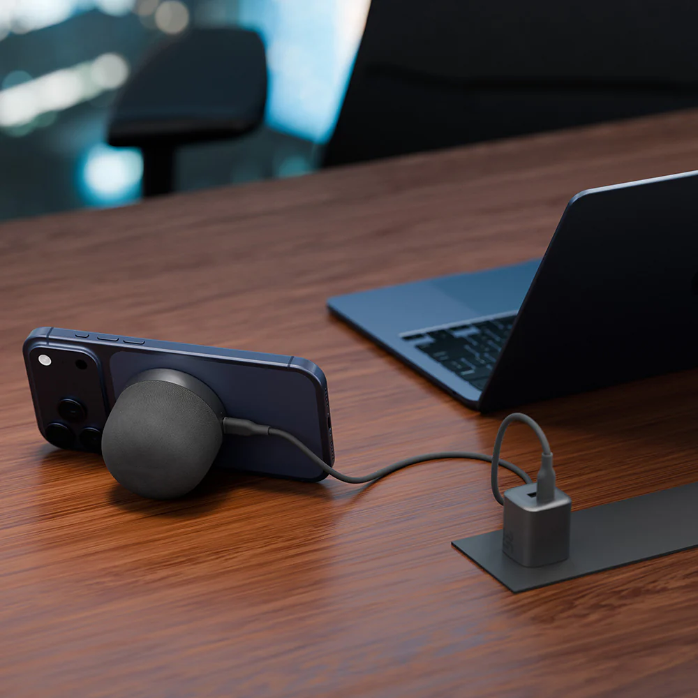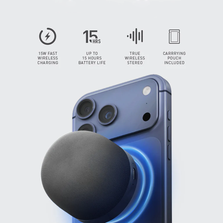 The portable speaker brings you the perfect blend of music and wireless charging. Simply connect it to a wall charger and experience music while charging your Qi-enabled phone at up to 15W power. Enjoy easy attachment to metal surfaces or compatible phones, making it perfect for on-the-go music enjoyment.