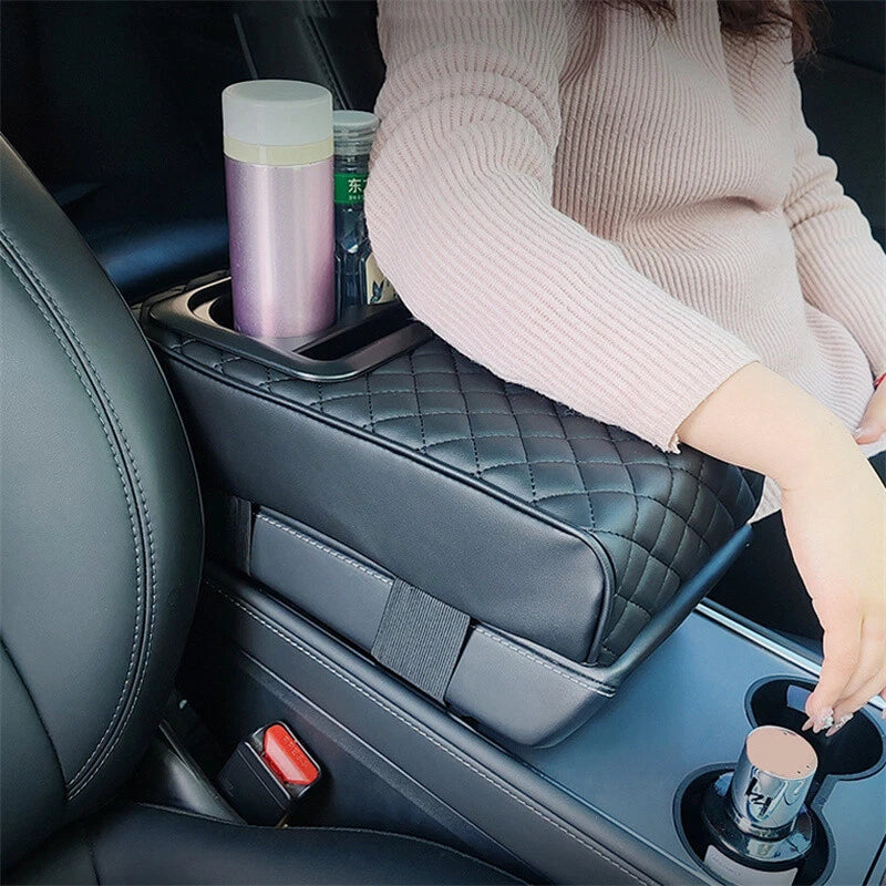 The Car Center Console Armrest Mat is a practical and comfortable accessory designed to enhance your driving experience. Featuring 2 integrated cup holders, this PU leather booster pad adds extra cushioning and storage to your vehicle's center console. Measuring 35 cm in length, 21 cm in width, and 7.5 cm in height, it provides a soft, comfortable armrest while keeping drinks and small items within easy reach.