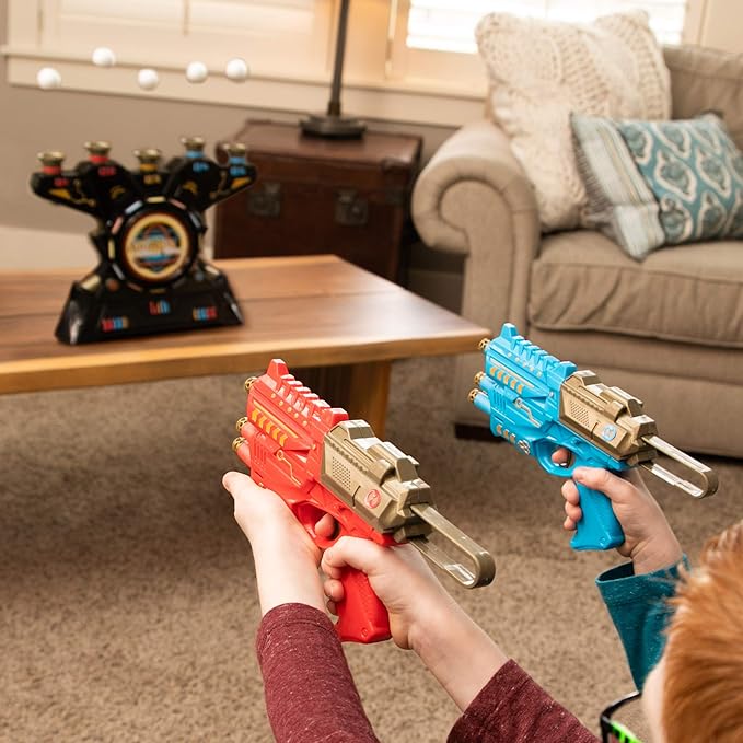 Equipped with responsive electronic blasters, tactile cockpit controls, and immersive sound effects that replicate the thrill of high-speed futuristic arena combat.