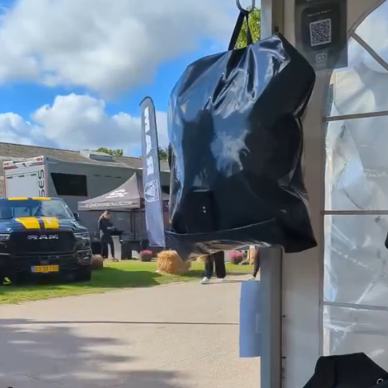 Rechargeable horse timer hay bag designed to automatically dispense hay at set intervals for controlled feeding.
