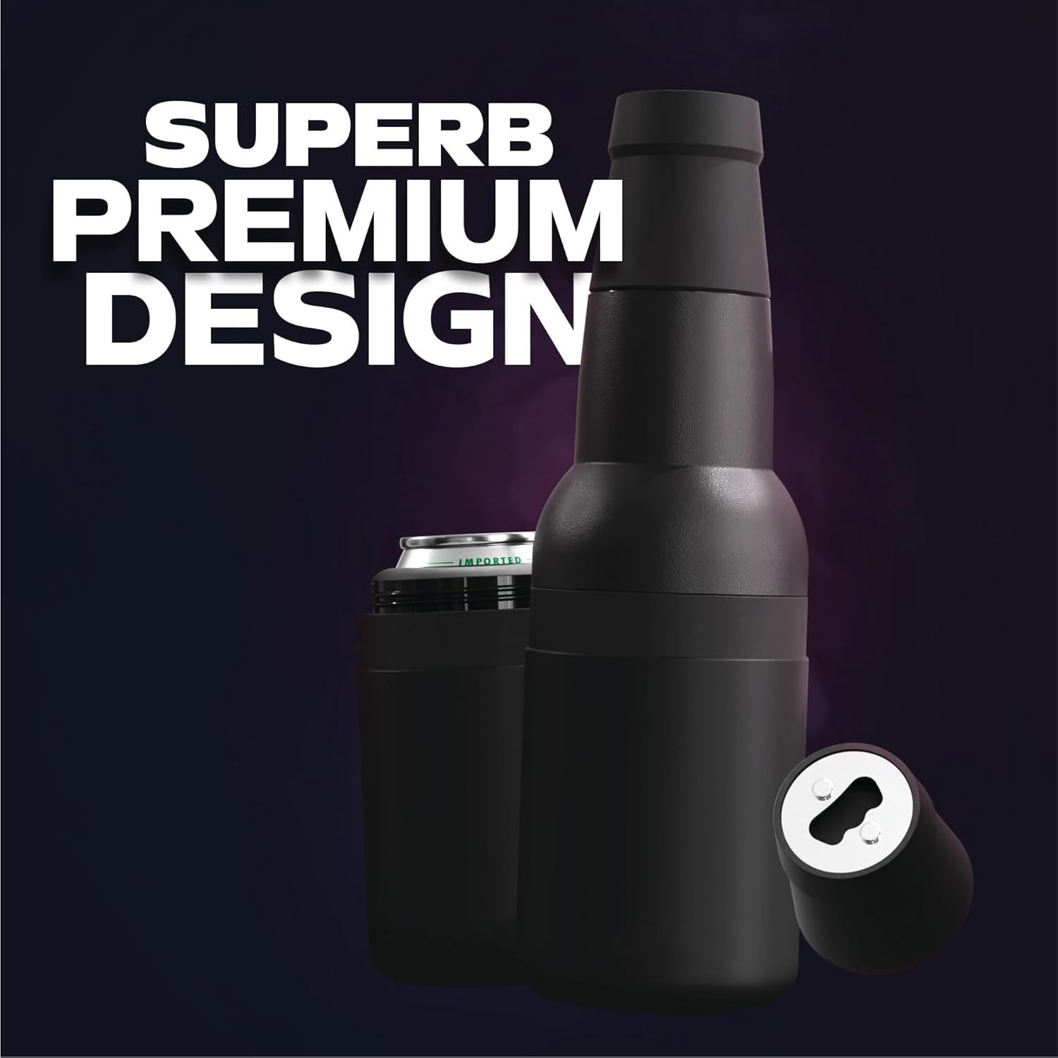 Vacuum Insulated Stainless Steel Beer Can & Bottle Cooler with Built-In Opener