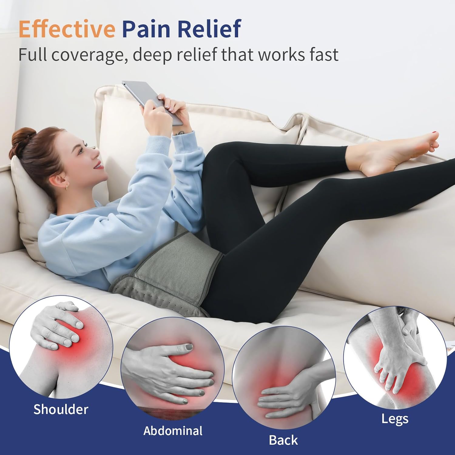 This heating belt targets the lower back and abdominal areas, providing precise relief where it's needed most.